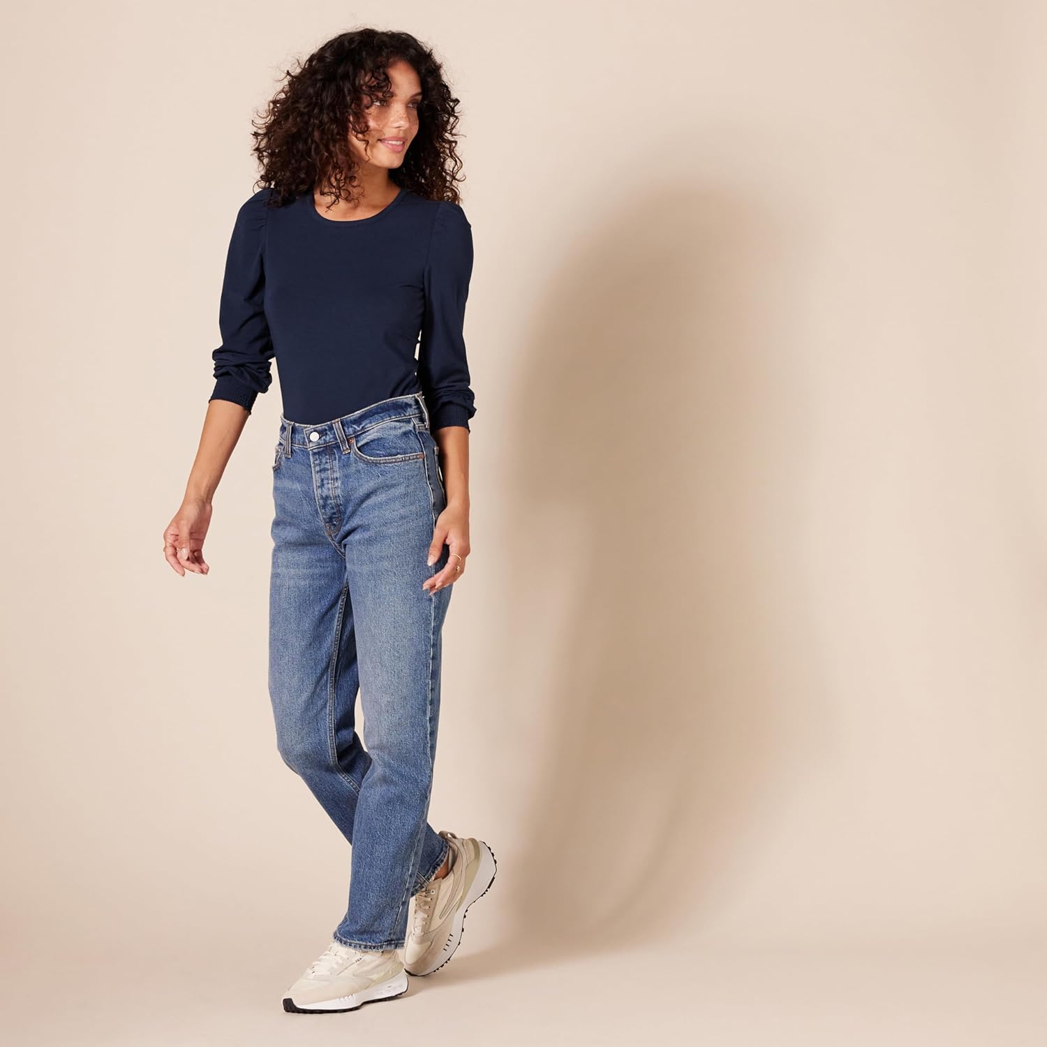 Amazon Essentials Women’s Long-Sleeve Crewneck Smocked Cuff T-Shirt