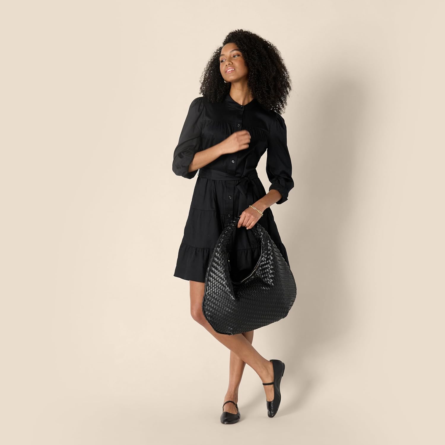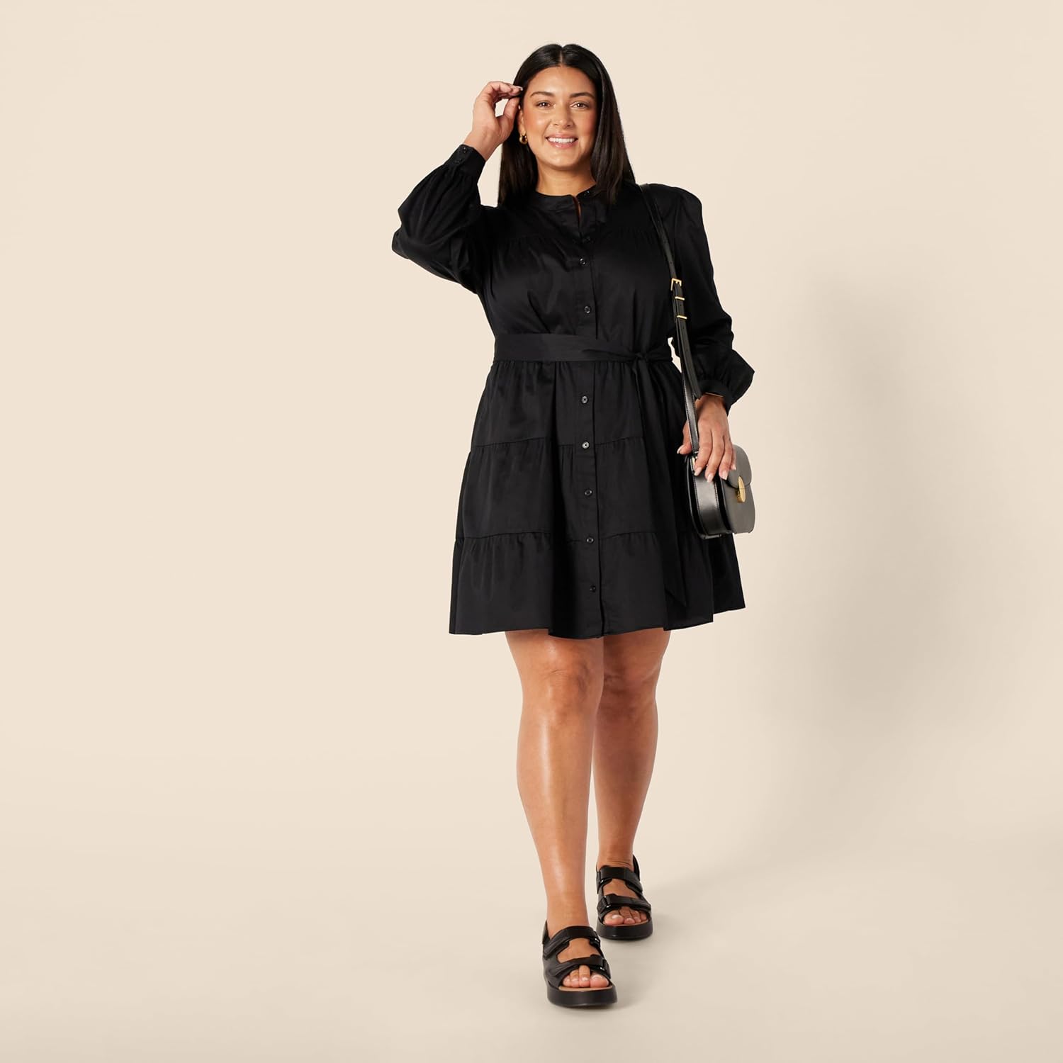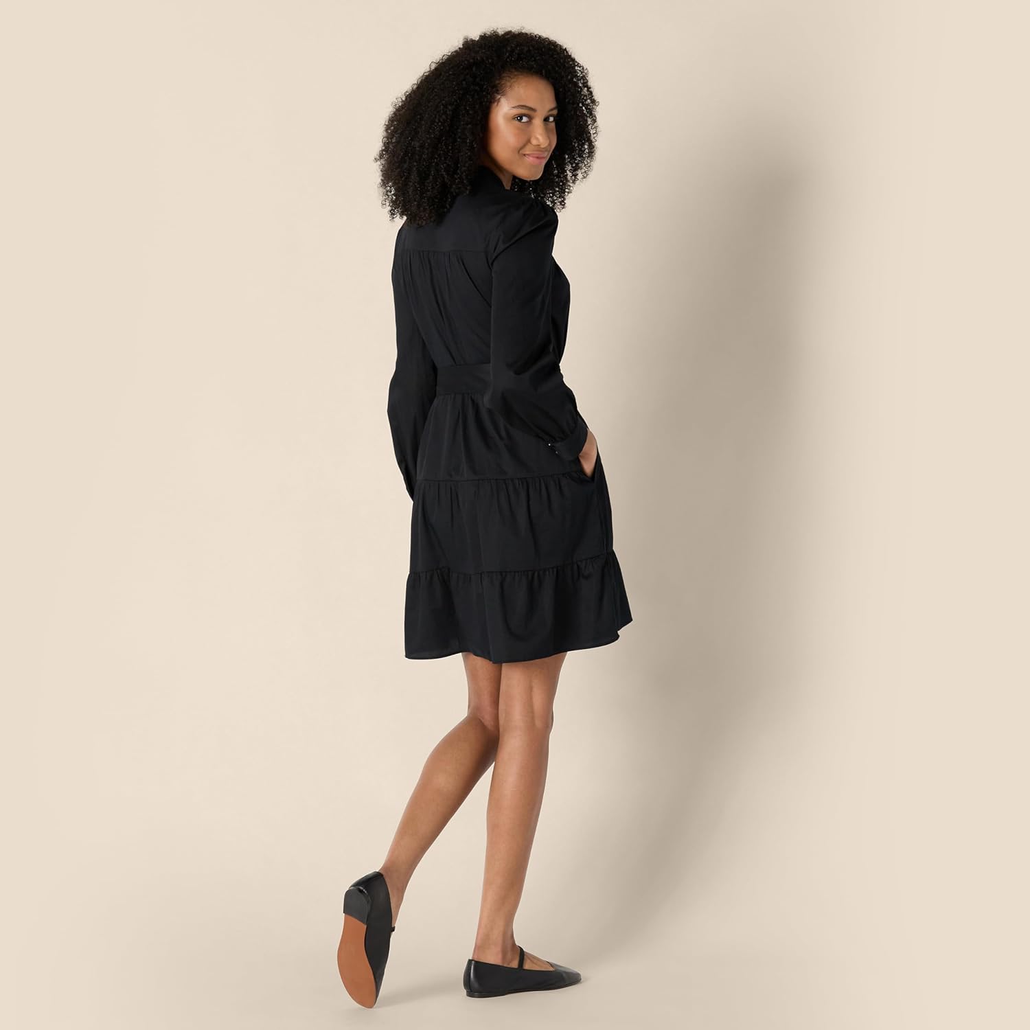 Amazon Essentials Womens Regular-Fit Cotton Sateen Tiered Shirt Dress