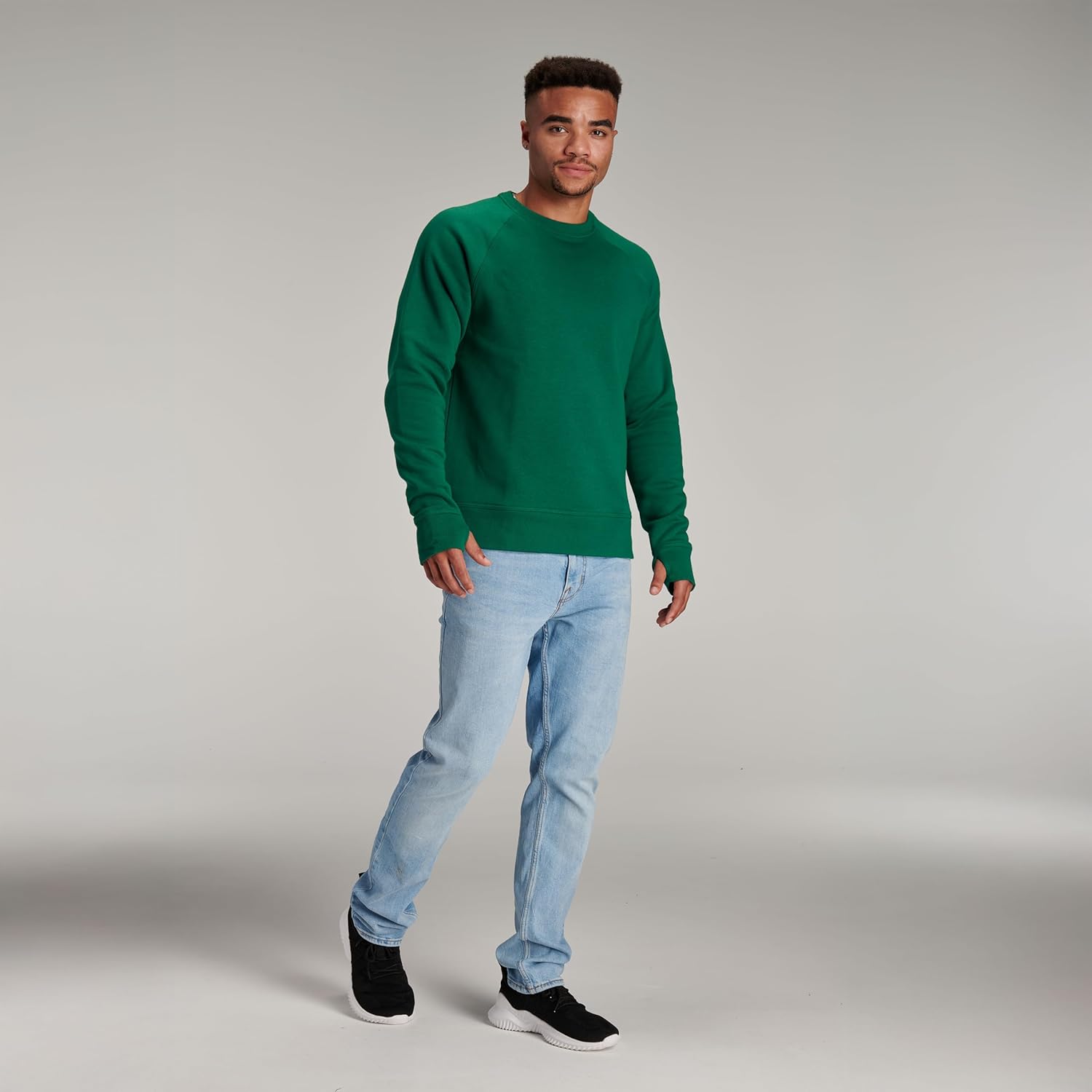 FLEECE, 9.7 oz. 60% Cotton / 40% Polyester; Crewneck, raglan sleeves; Thumbholes in stretch rib cuffs; Stretch rib bottom hem; Split hem with side vents; Loose fit