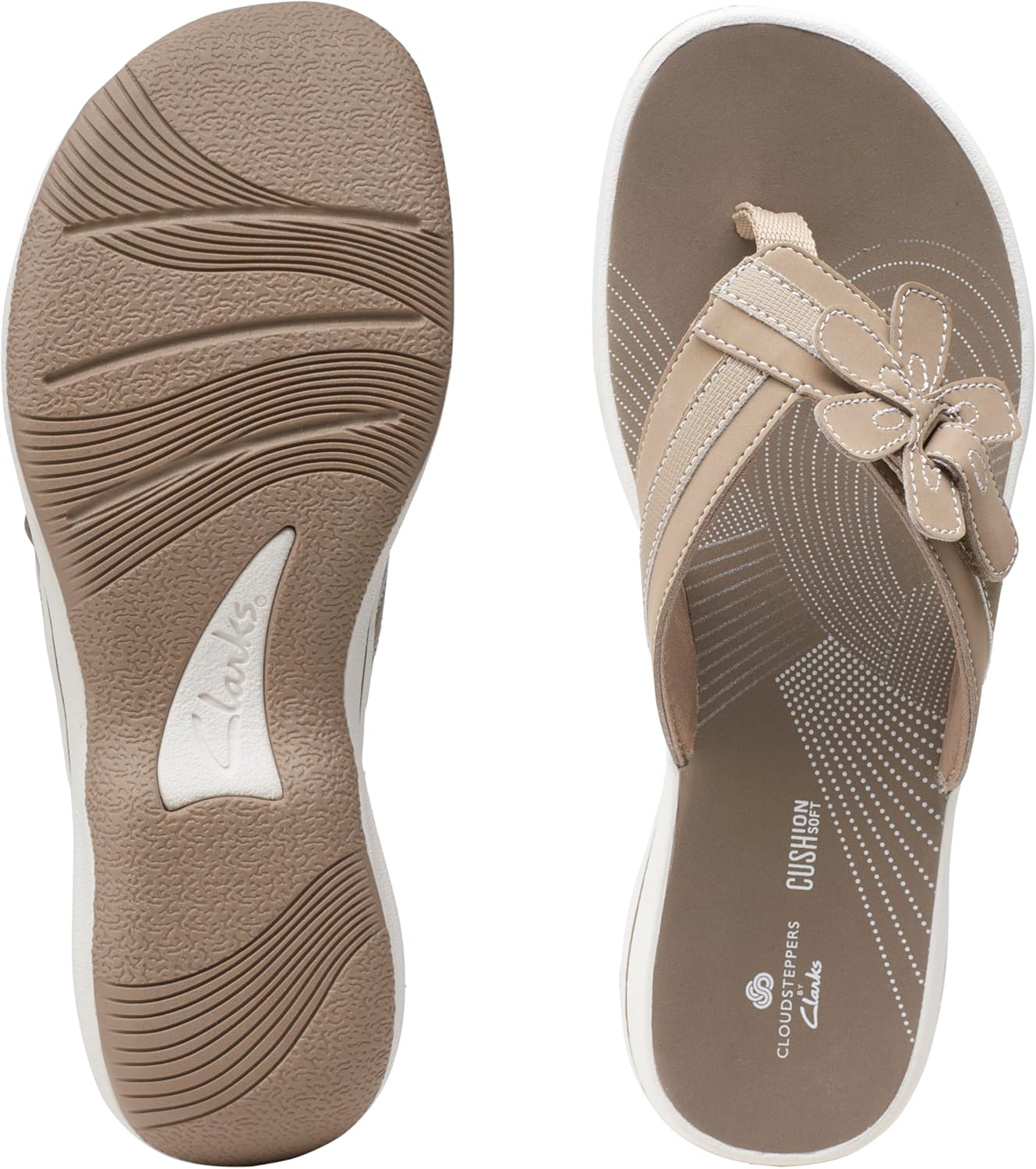 Pack light, step lighter. The Cloudsteppers™ Brinkley Flora flip-flop comes in coral for a look and feel that’s as light and bright as summer should be. A cushioned EVA midsole and footbed support and protect the foot from shells and beach pebbles without adding any extra weight.