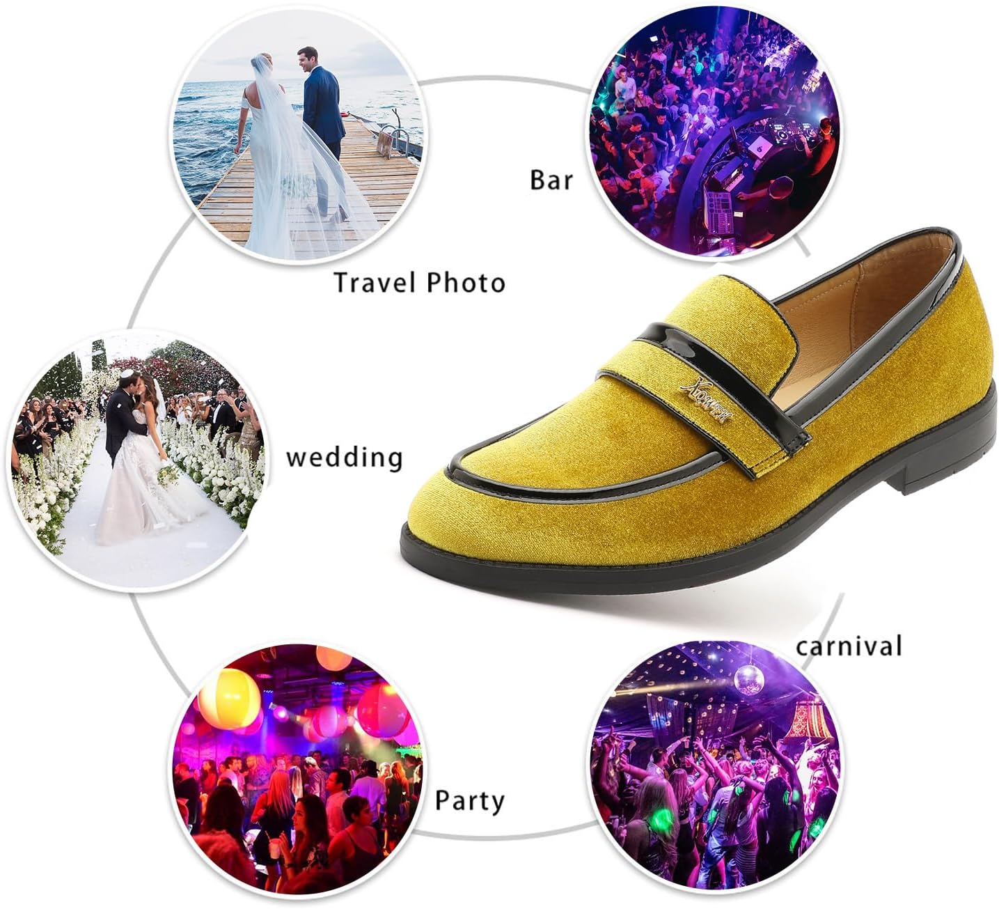 Mens Yellow Dress Velvet Loafers highlights the classic, elegant style, keeping up with fashion trends, enjoy the general use as a casual and informal worn for work and leisure occasions. We kindly hope that our Lime shoes will accompany you to every corner of the world,and witness the happiness of every footprint in your life.