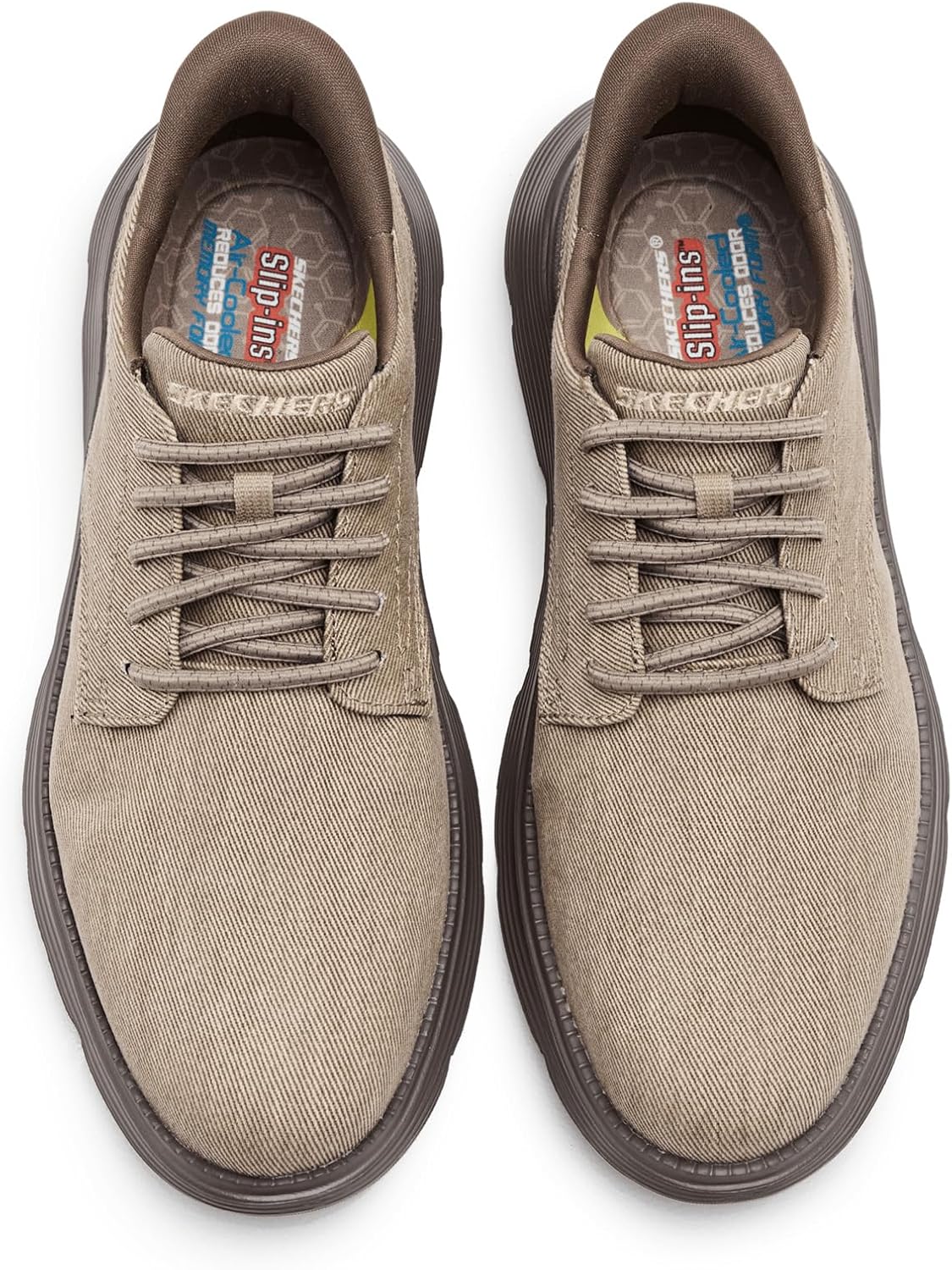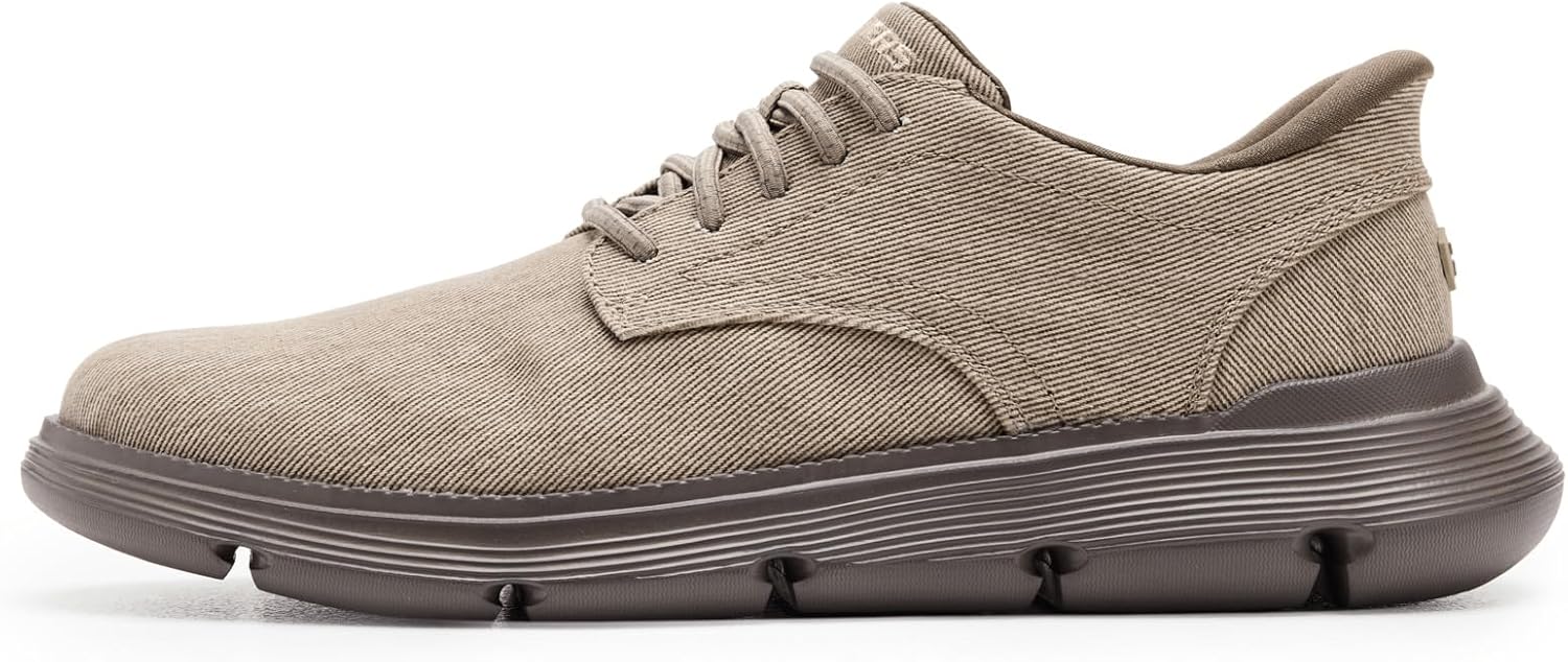 Experience effortless style and comfort with these slip on shoes for men from Skechers. The Garza – Clive combines classic casual design with innovative comfort features, including Air-Cooled Memory Foam insole and Memory Arch cushioning. These mens slip on sneakers feature a canvas upper with stretch laces and Heel Pillow technology for a secure fit. Perfect for those seeking comfortable, vegan-friendly footwear with a classic casual style.