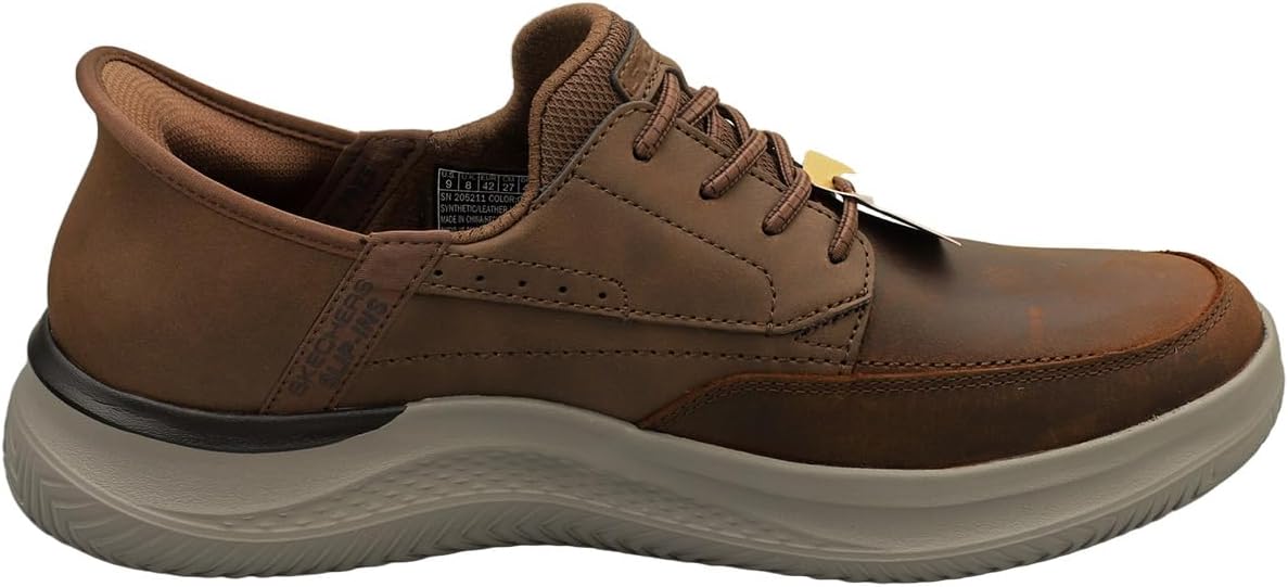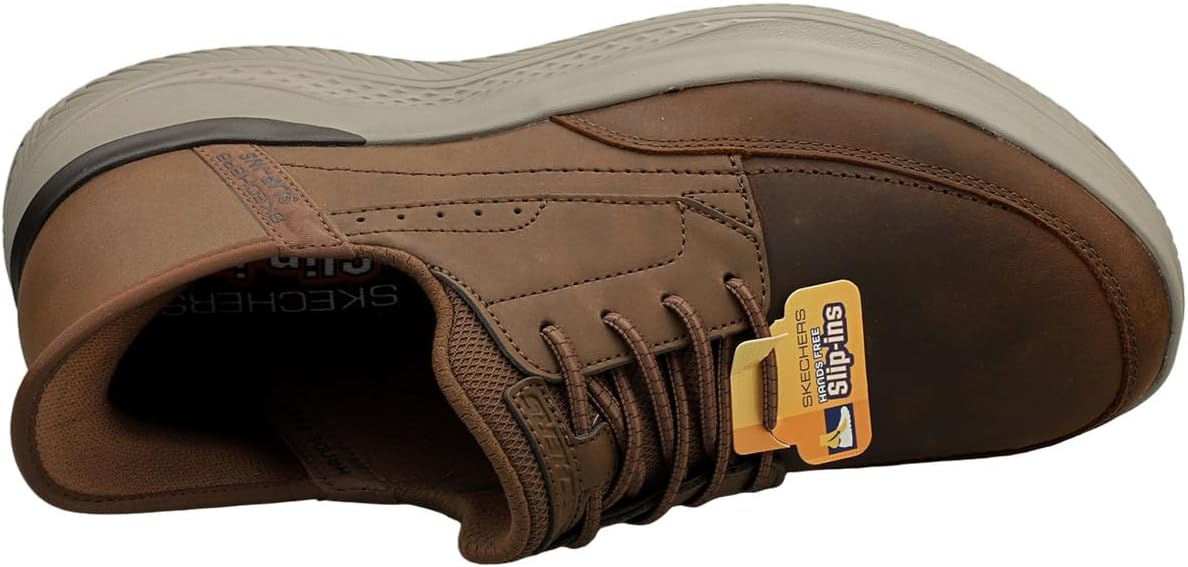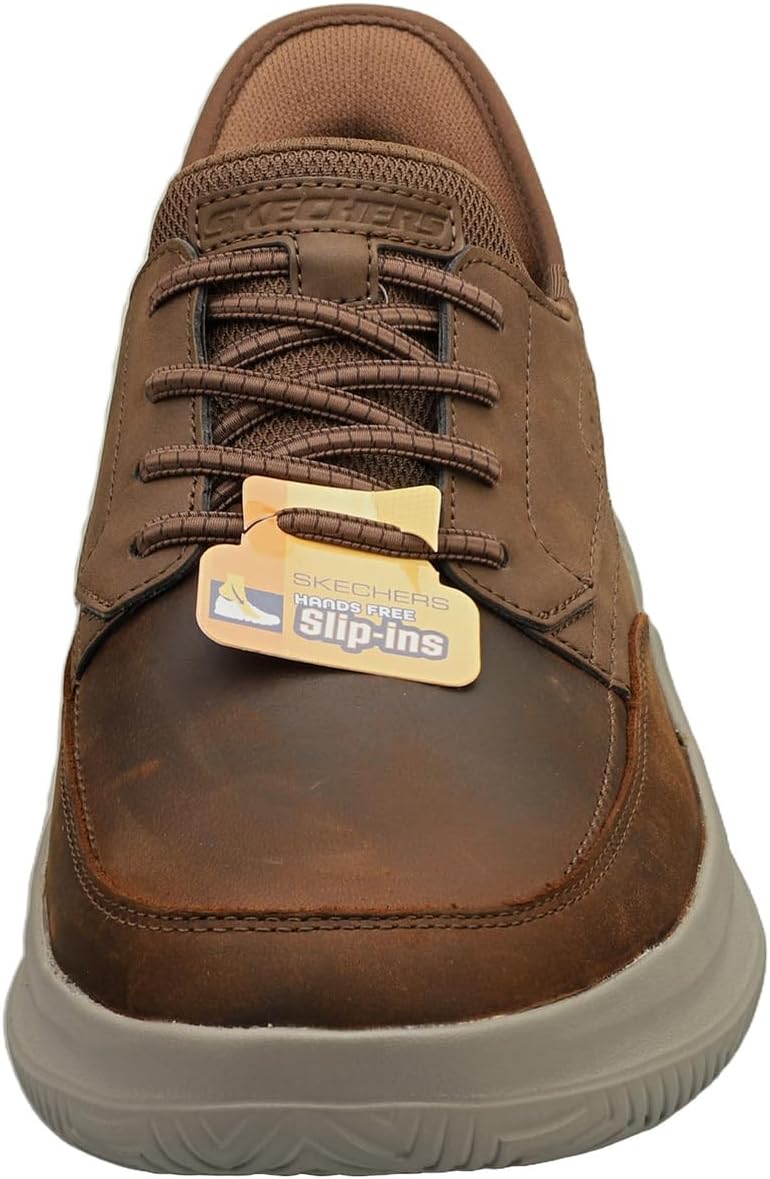 Experience effortless style and premium comfort with these slip on shoes for men. The Hands Free Slip-ins Relaxed Fit Hasting – Rory features a sophisticated moc toe design with a leather and synthetic upper complemented by stretch laces. The Air-Cooled Memory Foam insole and Heel Pillow technology provide exceptional comfort, while the relaxed fit ensures roomy comfort at the toe and forefoot. Perfect for those seeking mens slip on shoes that combine casual style with innovative comfort features.