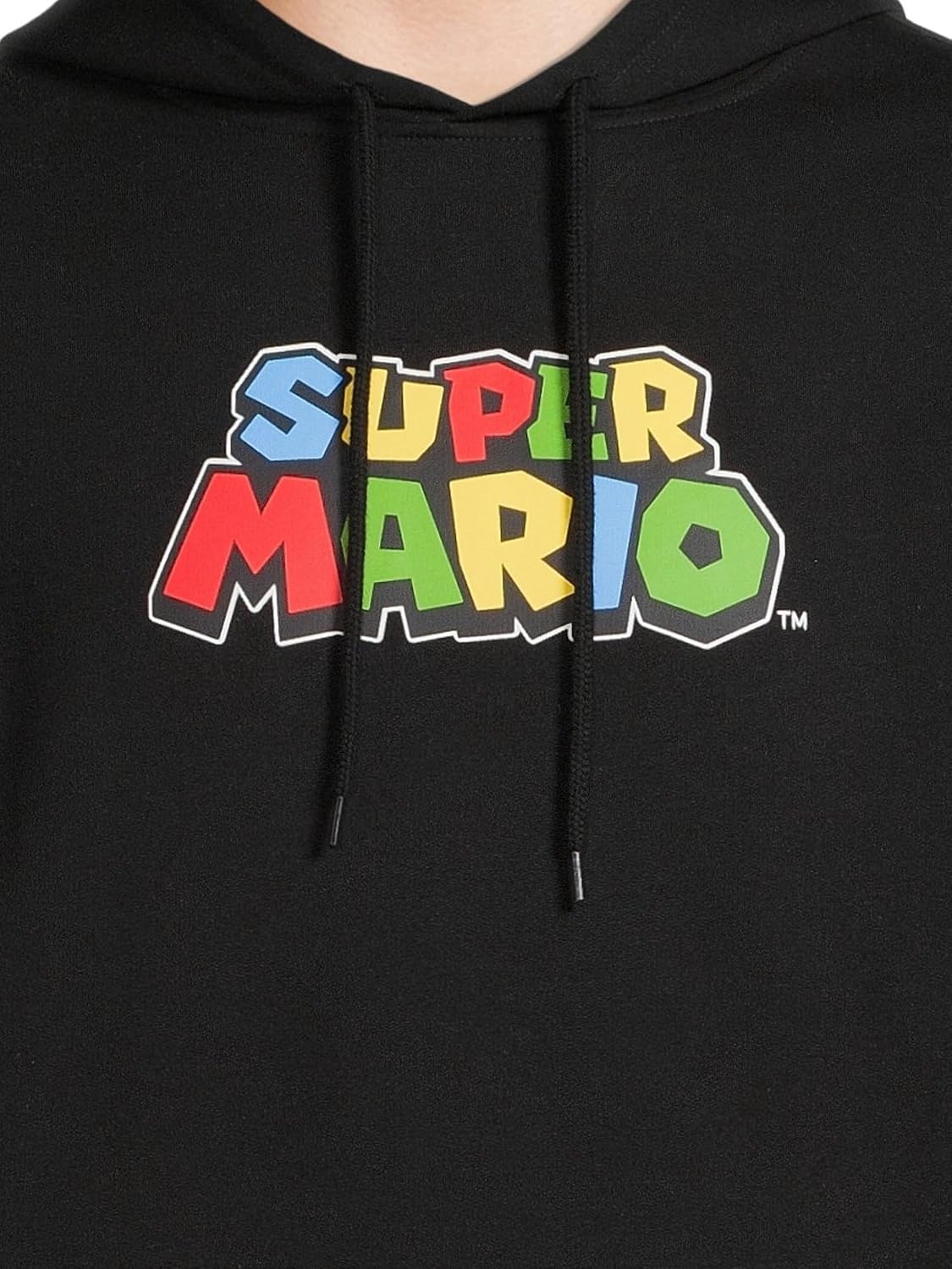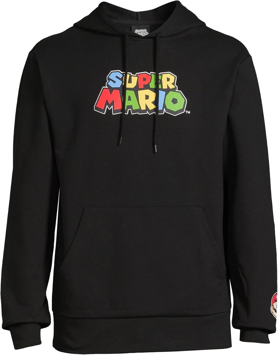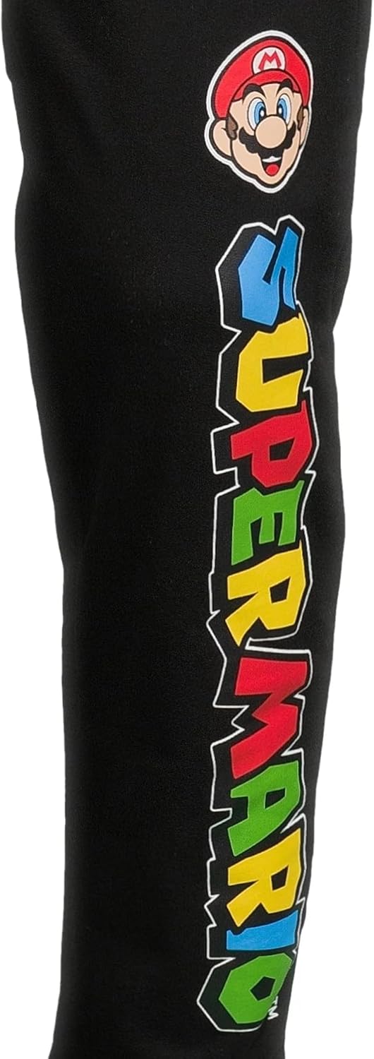 Level up your game in this Super Mario Brothers Fleece Hoodie and Jogger Pants Set! Pullover Hoodie with drawstring features the iconic Super Mario logo on the chest and a Super Mario head on the left sleeve. Jogger-style sweatpants have an elastic waist, adjustable drawstring closure, and coordinating graphics on the leg. Made with a cotton-poly blend and a soft fleece inner lining, this outfit is built to last. Just wash inside out with like colors, tumble dry low, and it’s ready for your next outing or gaming session. Great gift for the Super Mario fan in your life for birthdays, holidays, back to school, or any occasion. In Black.