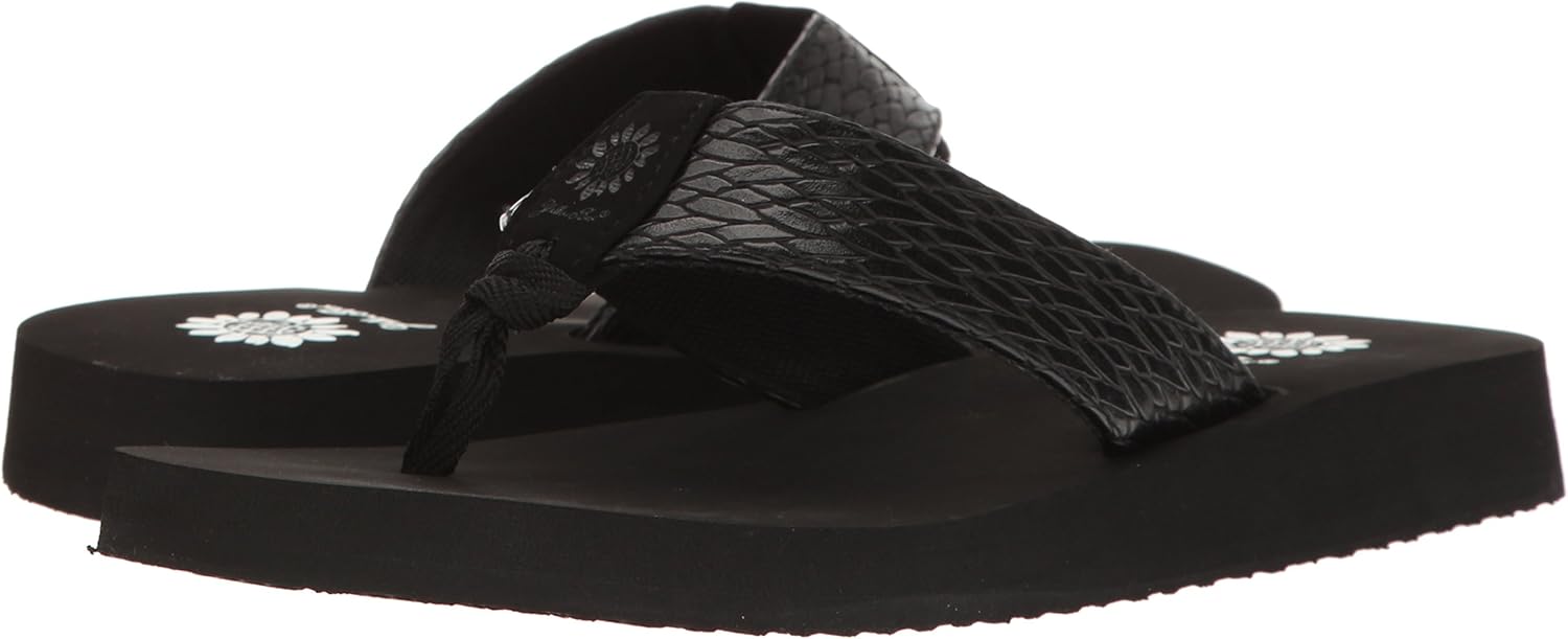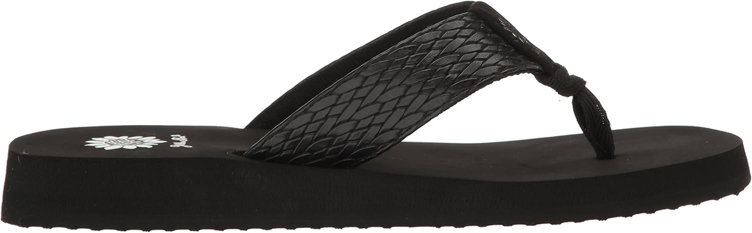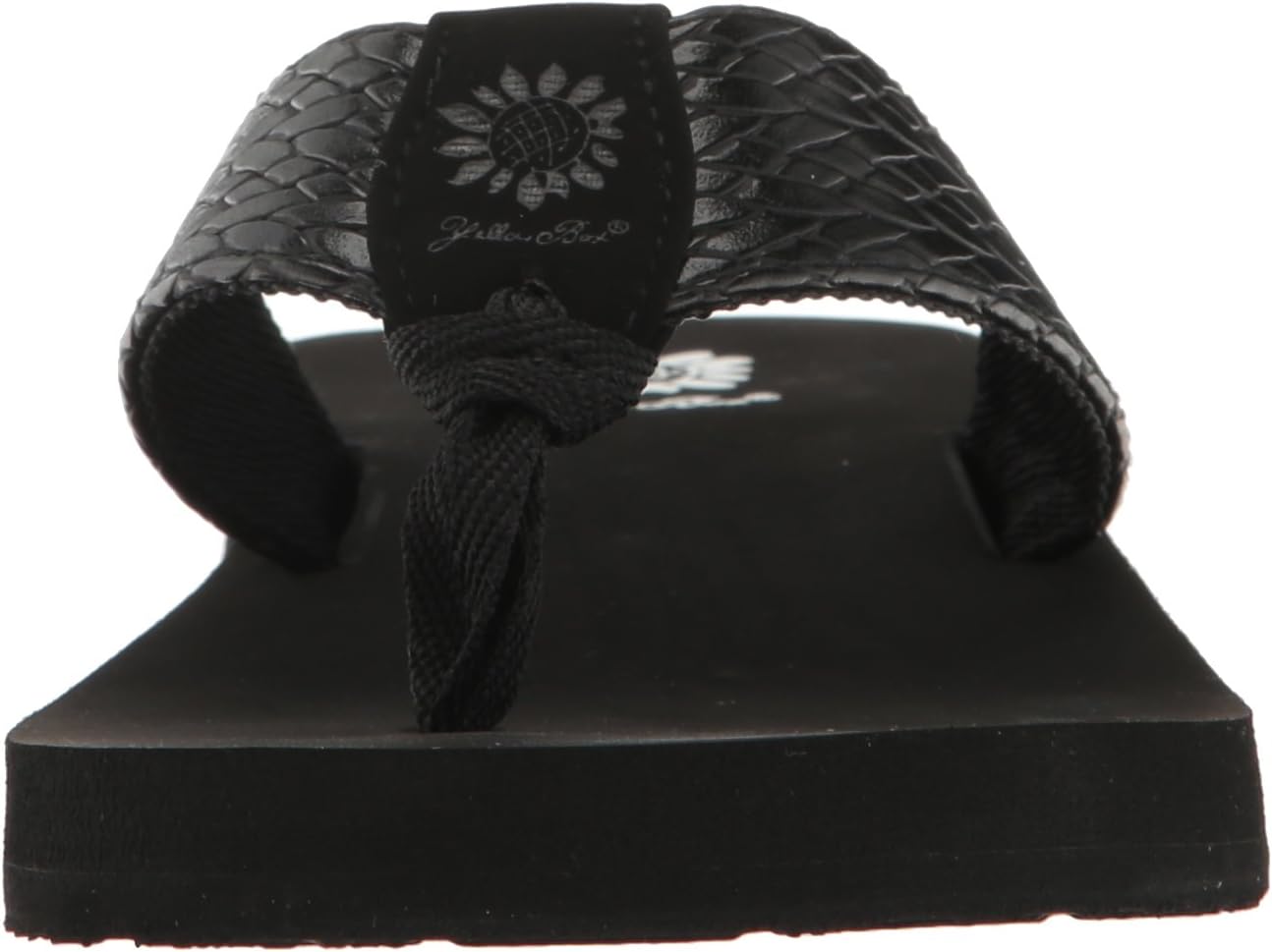 A yellow box classic flip flop wedge in a rich cross stich embossed manmade material. hit the beach, lunch or travel in style